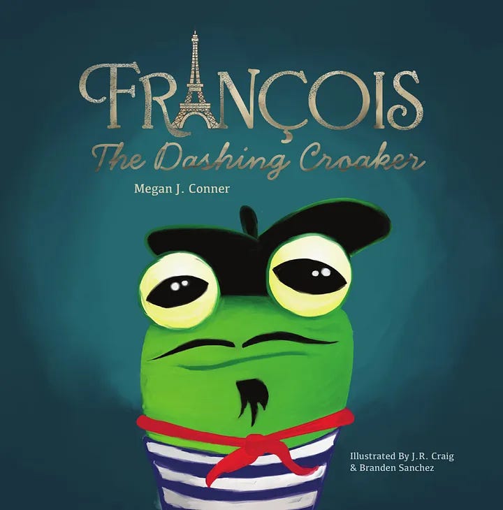 “Francois, The Dashing Croaker by Megan Conner is a delightful swim across the pond following the developmental life of a frog. This beautiful children’s picture book is a two-in-one, where it opens with a cute love story between the dashing Francois and the beautiful Mademoiselle Ami dancing on a lily pad, and ends with a biology lesson explaining the amazing life-stages in frog development. Beautifully illustrated by JR Craig and Branden Sanchez, this book is a win-win for quality fun and lesson time between parents and their kids.” - Catherine, Amazon Reviewer.
